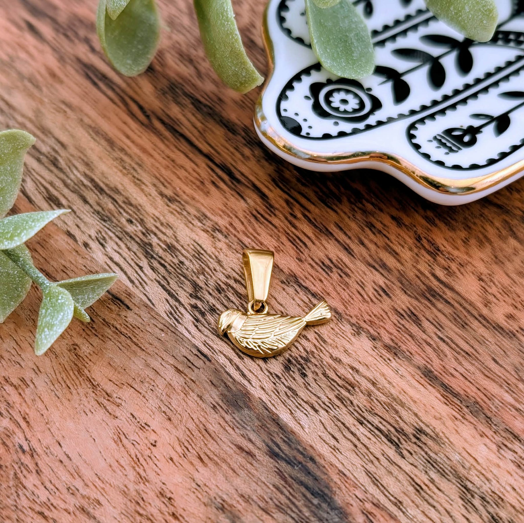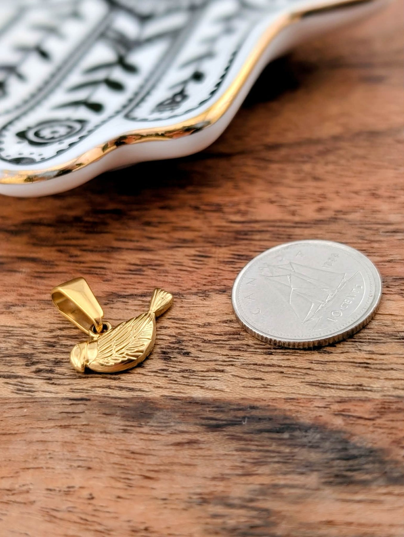 Cette breloque de Timoineau en acier inoxydable est de couleur doré.