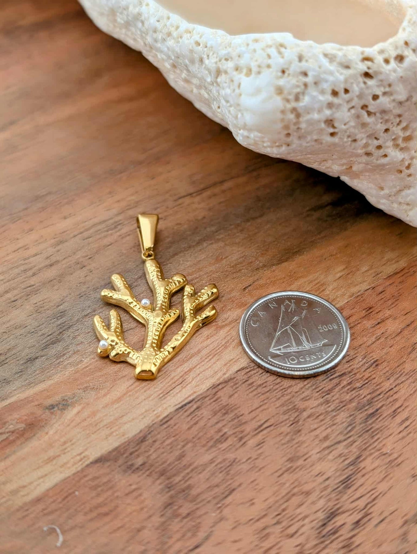 Belle breloque de coraux avec mini perle fait d'acier inoxydable or avec bélière.