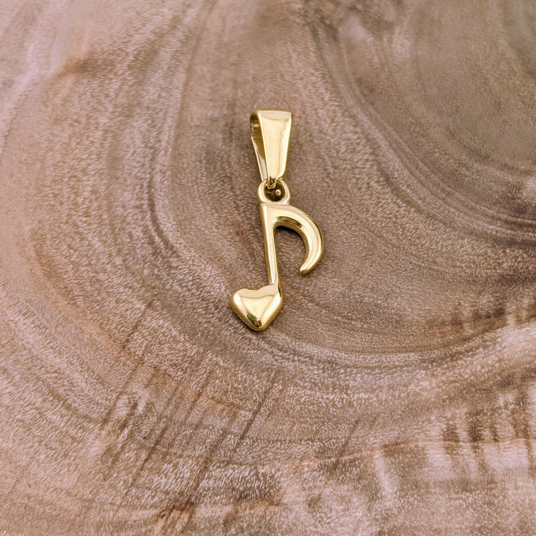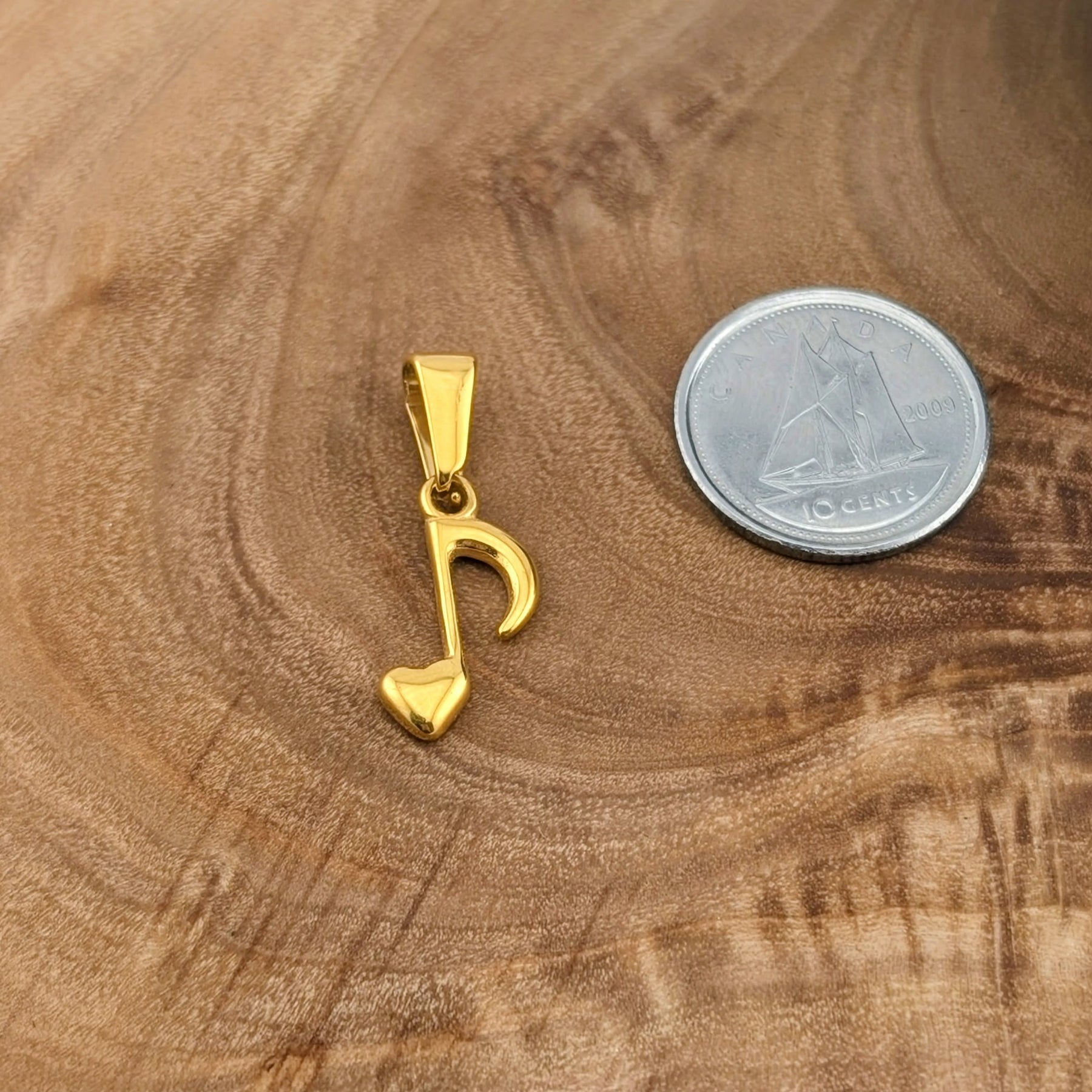 Breloque au son de la musique est une petite note de musique fait entièrement en acier inoxydable couleur or avec un coeur au lieu d'un point dans le bas.
