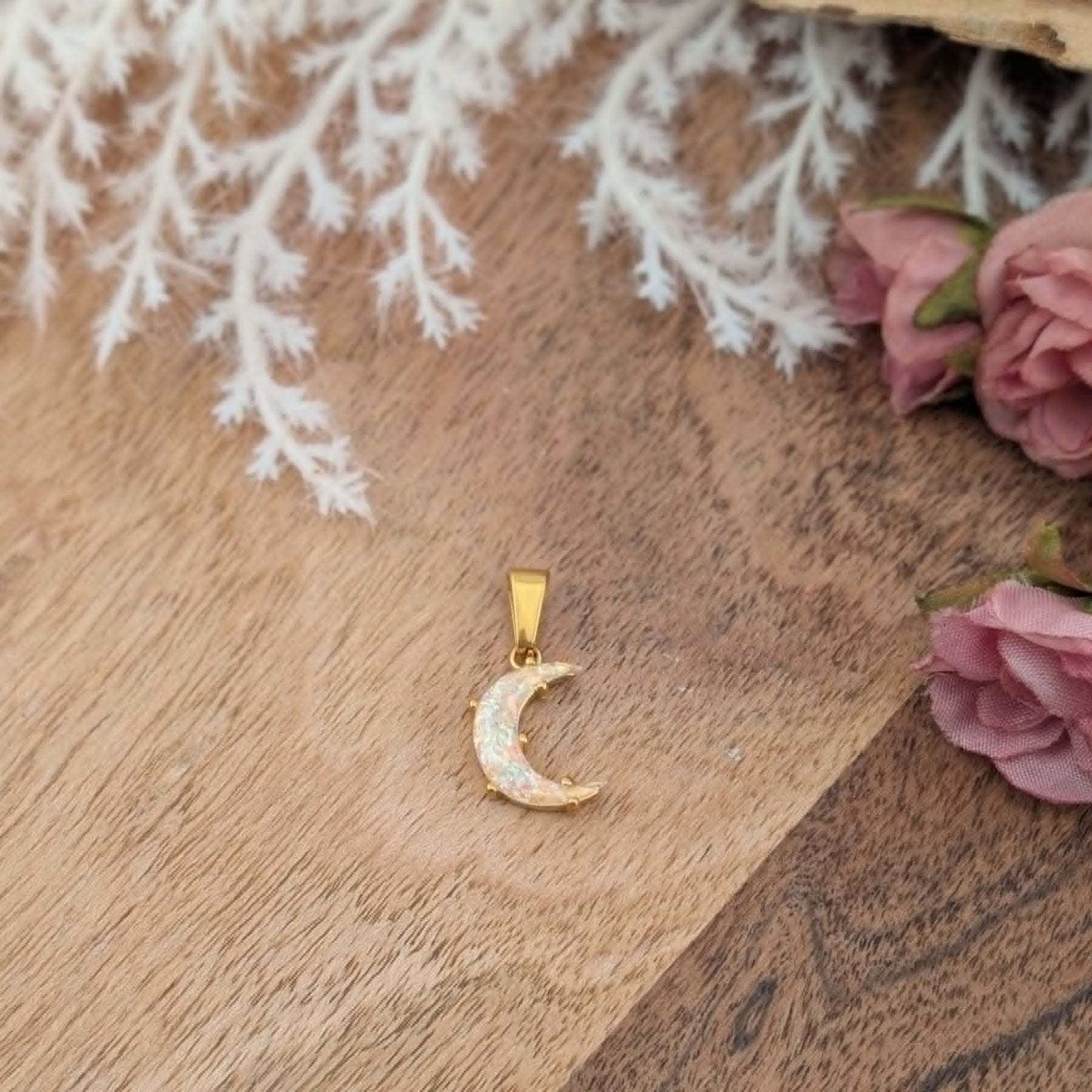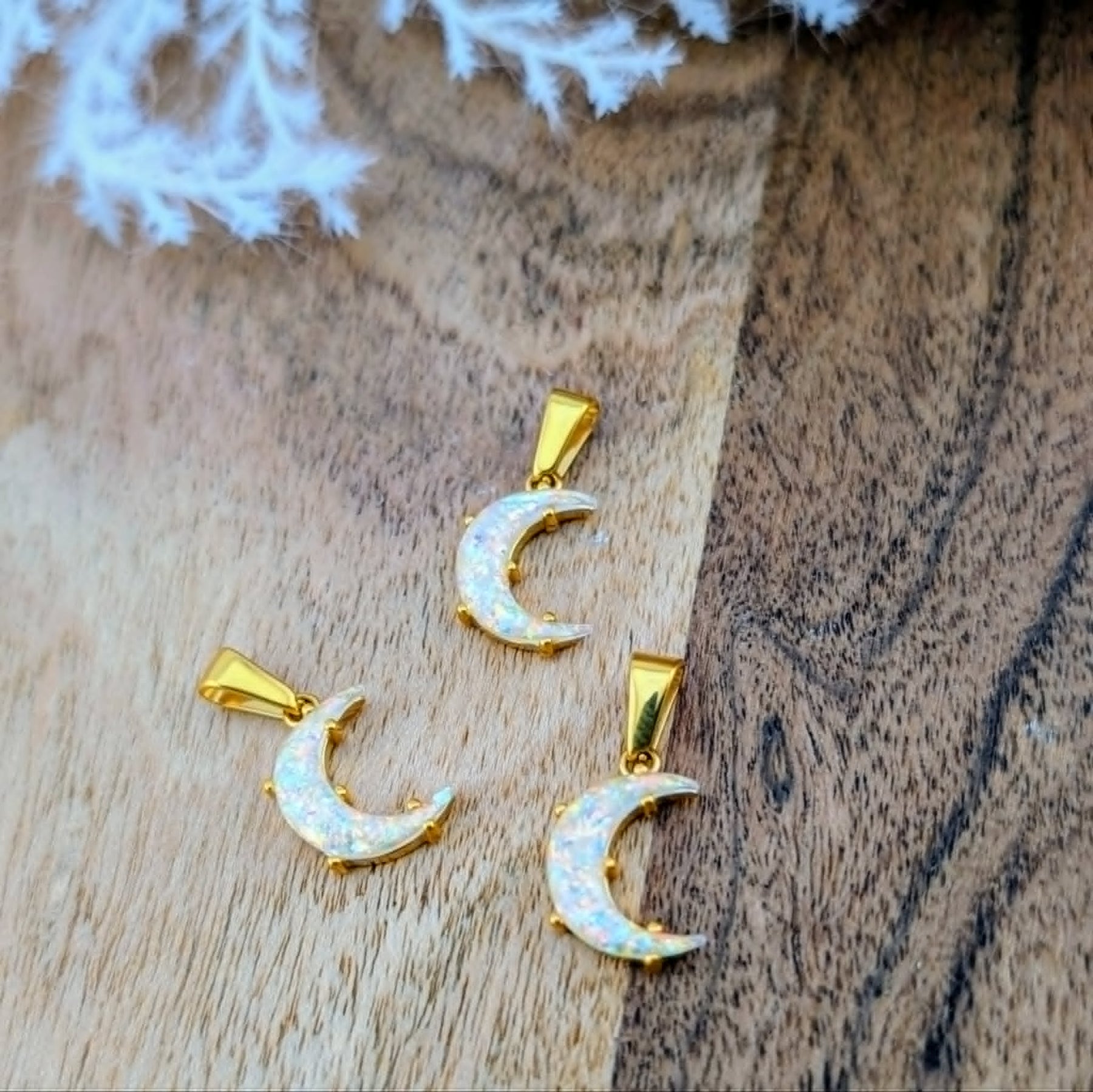 Fait d'acier inoxydable et vendu avec sa bélière cette magnifique breloque de croissant de lune pailleté est absolument unanime! Elle ne passe pas inaperçu!