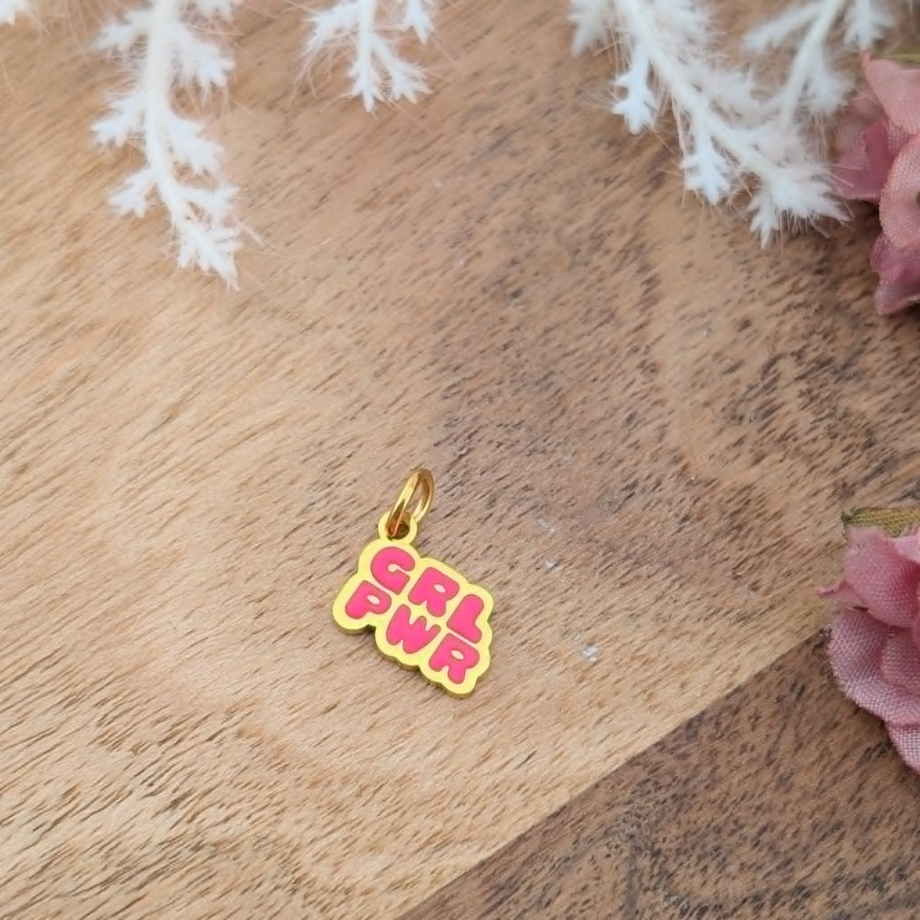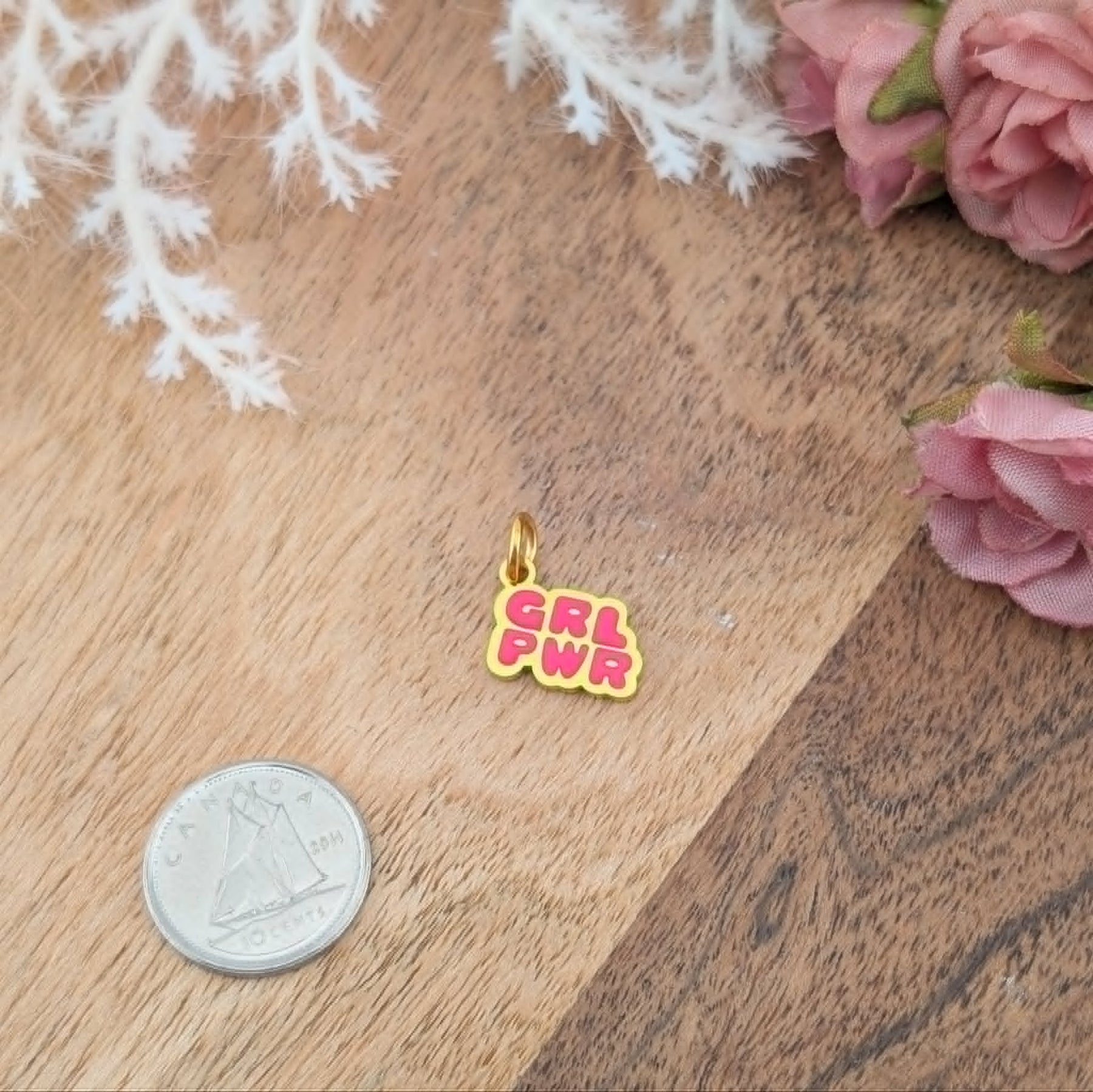 Breloque GRL PWR pour ajouter de la couleur à votre journée! Complètement fait d'acier inoxydable et vendu avec sa bélière.