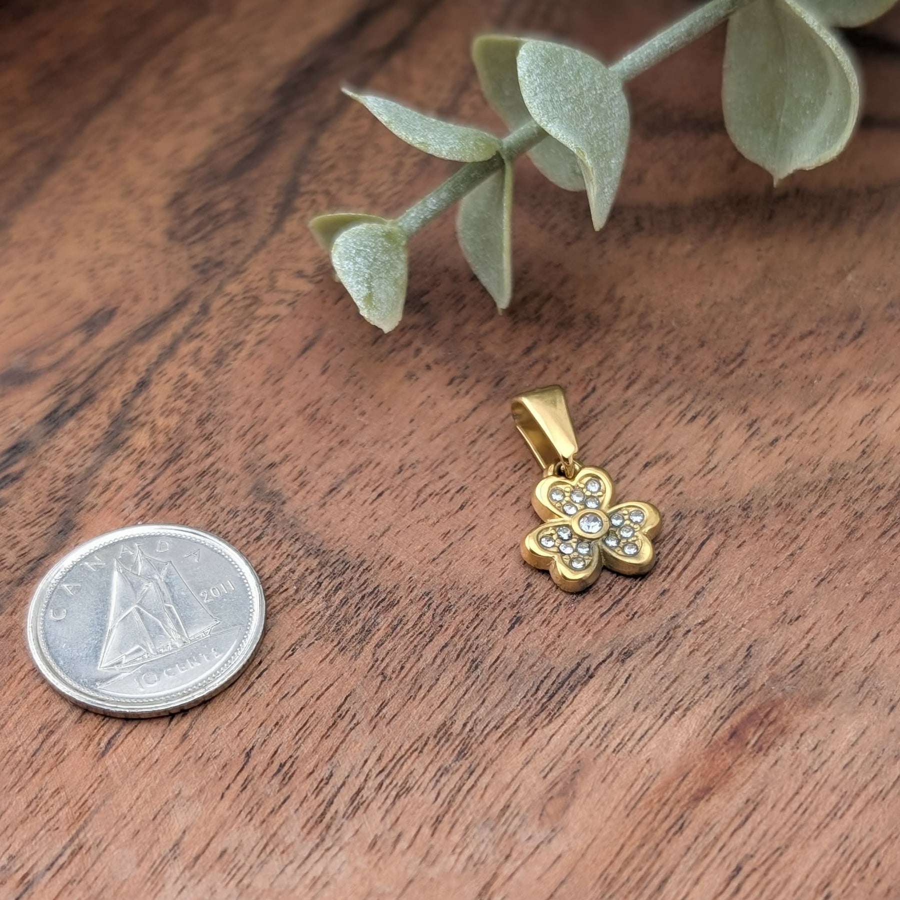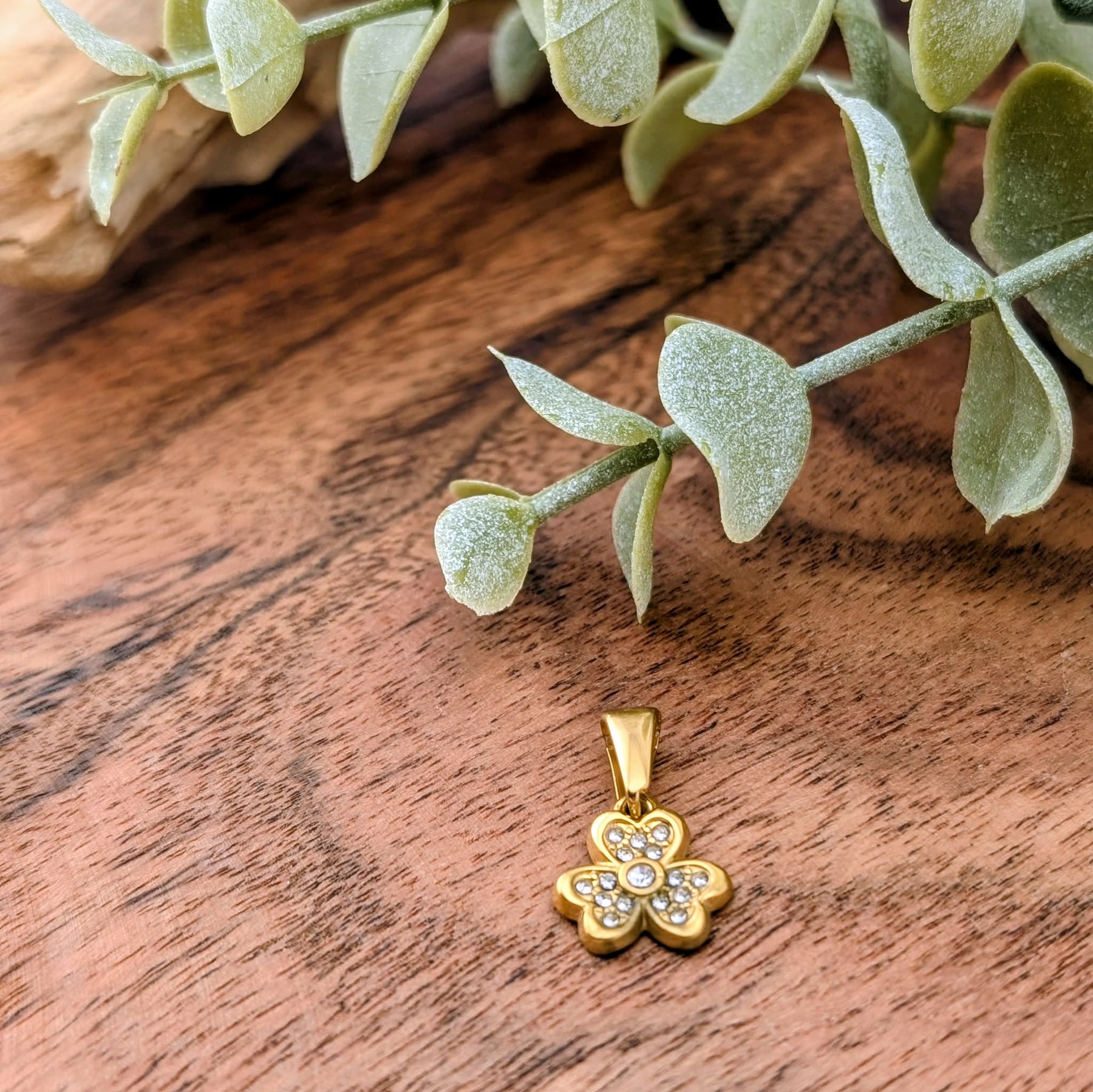 Pendentif trèfle doré brillant en acier inoxydable et de couleur doré.
