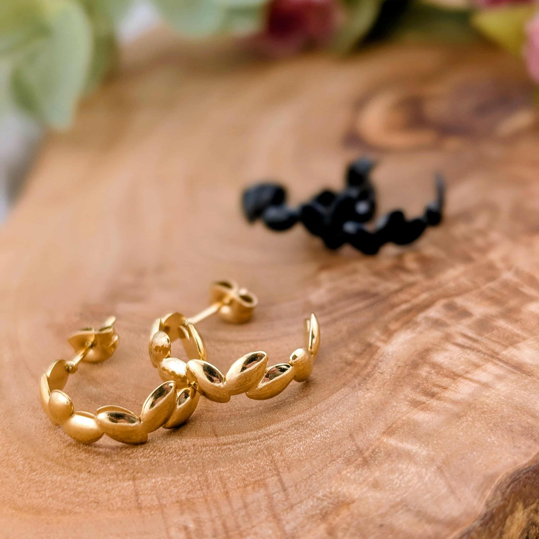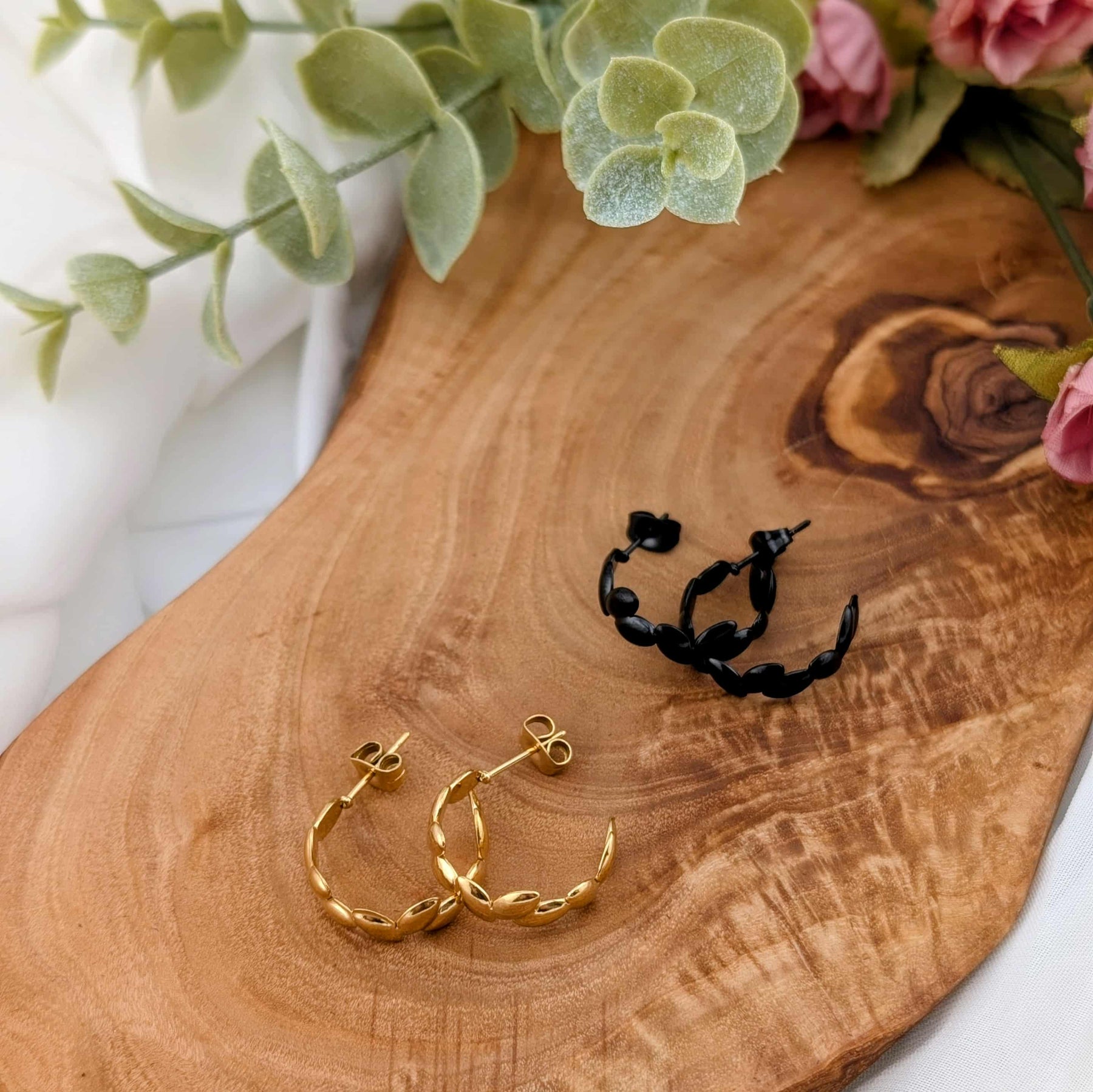 Boucle d'oreille de style anneaux en acier inoxydable or ou noir au choix.
