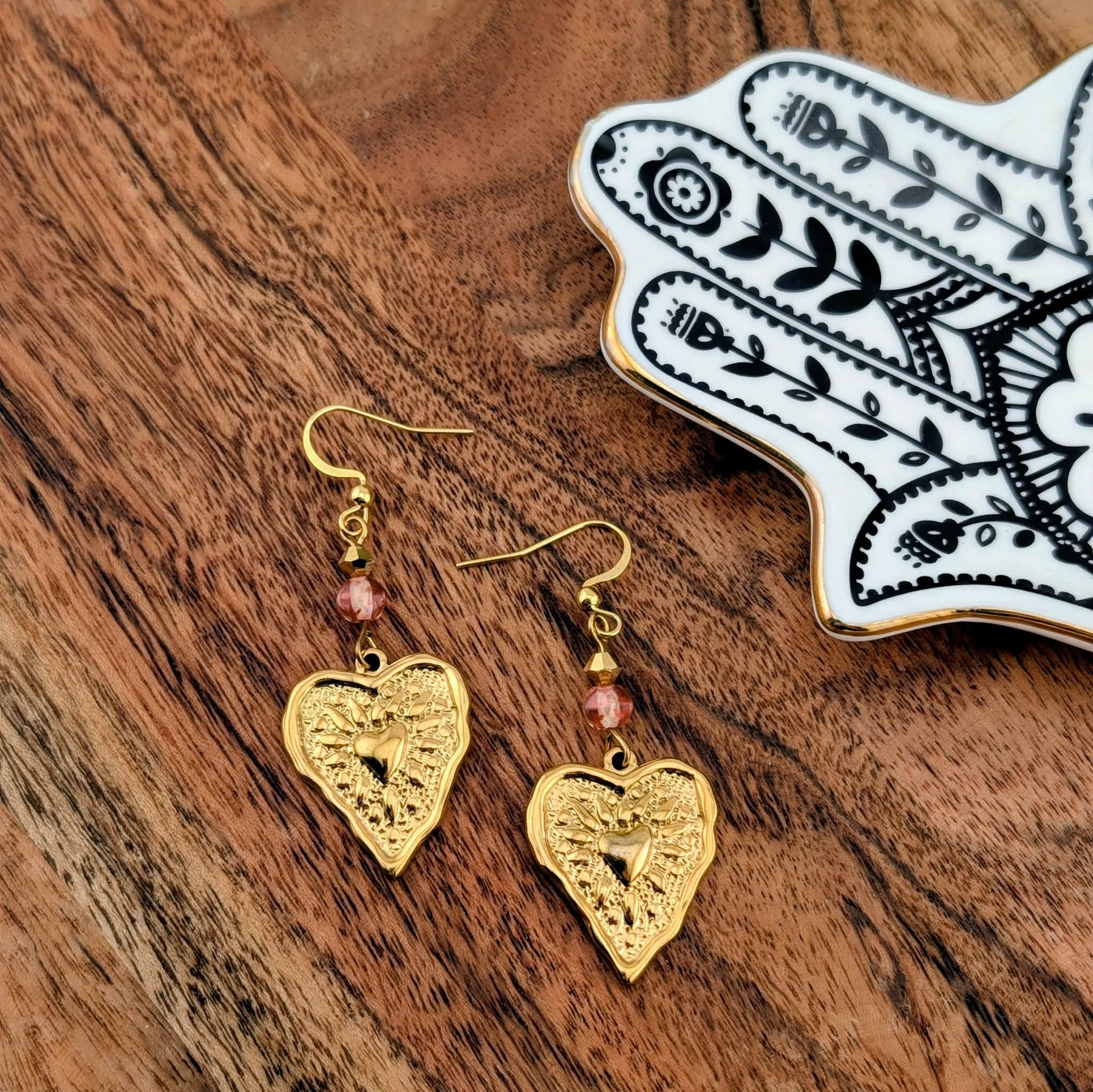 Belles boucles d'oreille en acier inoxydable doré avec breloque de coeur et Swarovski or.