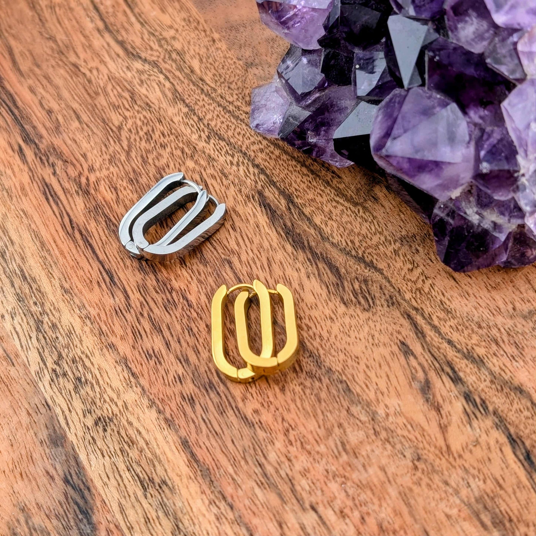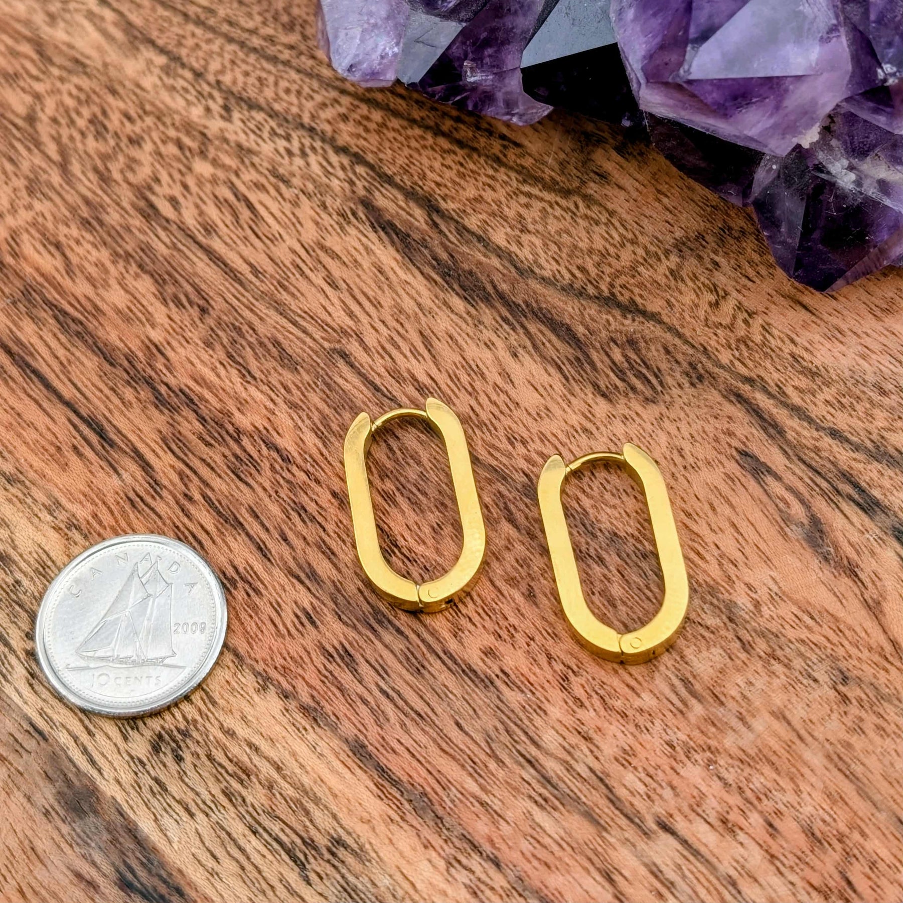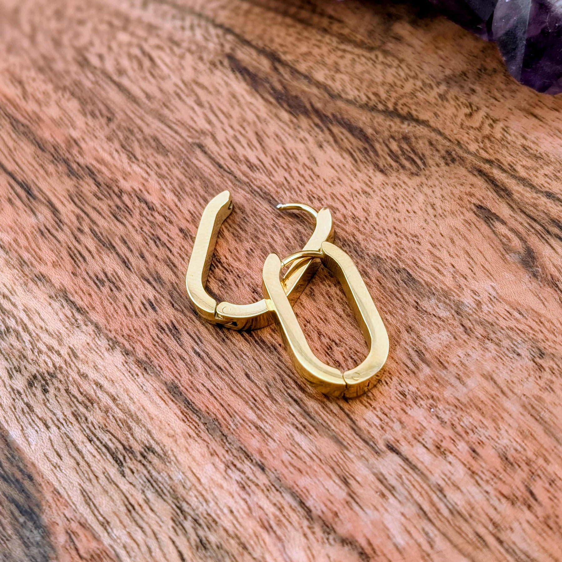 Jolis anneaux ovale or ou argent complètement en acier inoxydable hypoallegène.