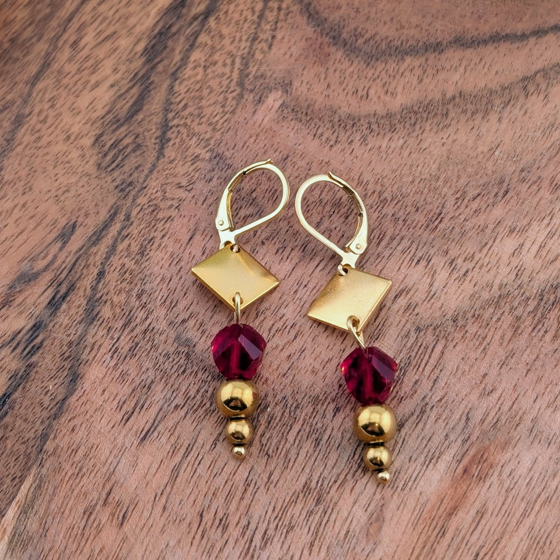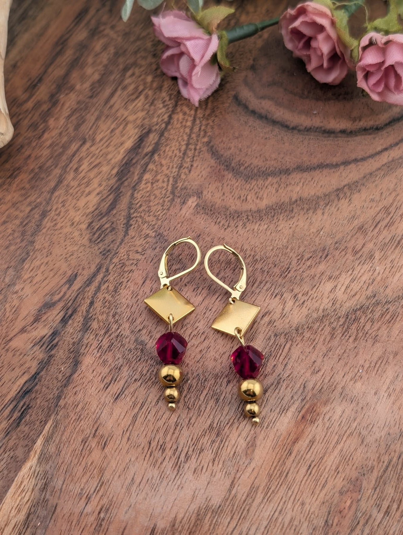 Boucles d'oreilles Saint Valentin rouge et or fait d'acier inoxydable