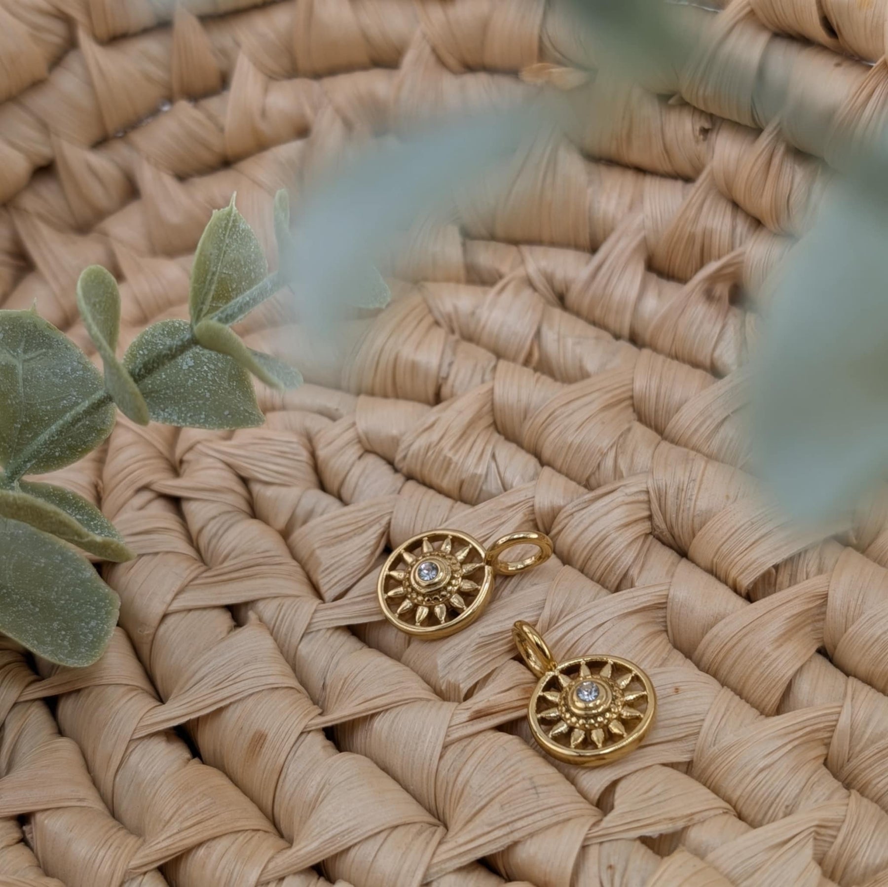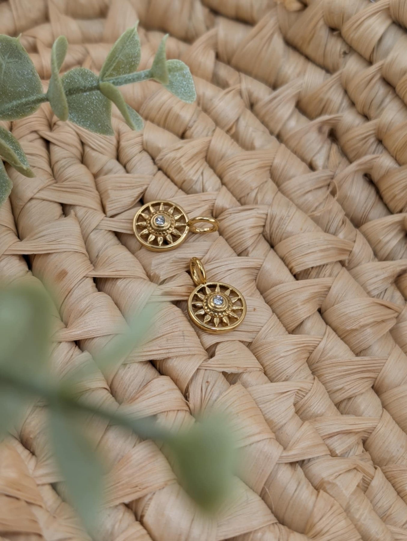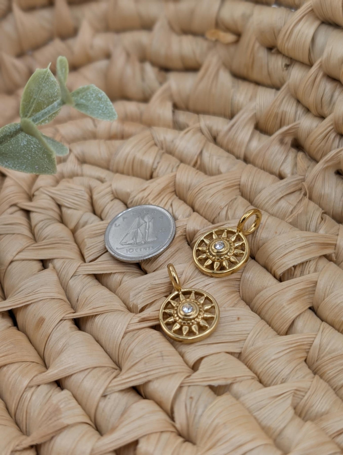Duo de breloques soleil brillant or fait d'acier inoxydable couleur or.